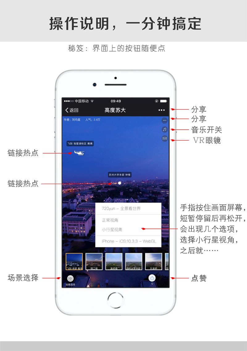 高度九游官网,让飞行器在百米高空拍摄九游官网,采用VR全景技术,让您站在上帝的高度、选择不同的季节不同的时段、全方位多角度欣赏校园的美景,从一个非常的高度展示九游官网魅力。
