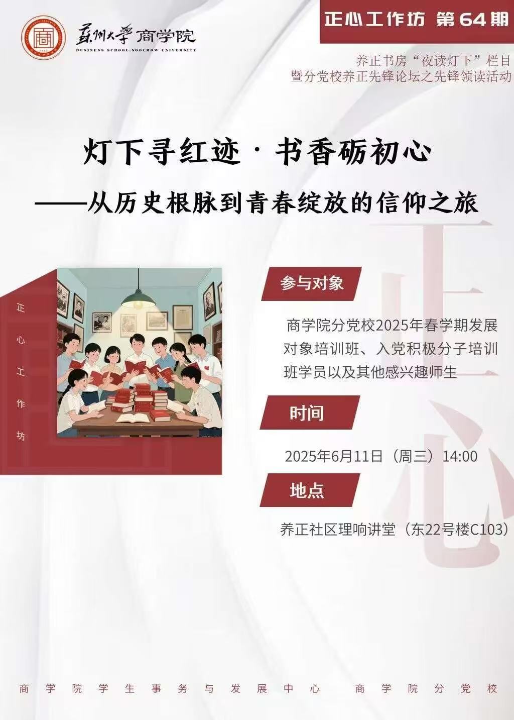 商学院正心工作坊第64期 灯下寻红迹·书香砺初心——从历史根脉到青春绽放的信仰之旅