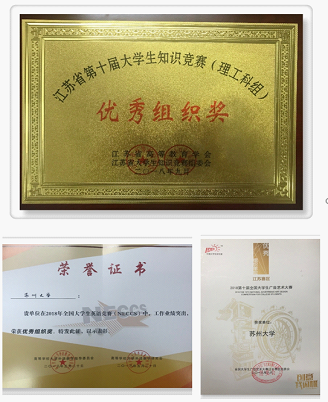通过校院联动机制的有效运转,学校近年来积极组织学生参与了各类国家级、省级重要赛事,成果显著。包括:强学科竞赛,如全国大学生电子设计竞赛、全国大学生广告艺术大赛;跨学科竞赛,如“挑战杯”竞赛、“互联网+”大学生创新创业大赛;基础学科与技能竞赛,如全国大学生英语竞赛、江苏省普通高校高等数学竞赛。结合自身优势特色资源,学校积极承办一系列国家级、省级赛事,譬如先后承办了第八届全国大学生外贸跟单(纺织)+跨境电商职业能力大赛,第六届江苏省工科院校先进制造技术实习教学与创新制作大赛以及江苏省第一届大学生健康素养竞赛苏南片区决赛等。
