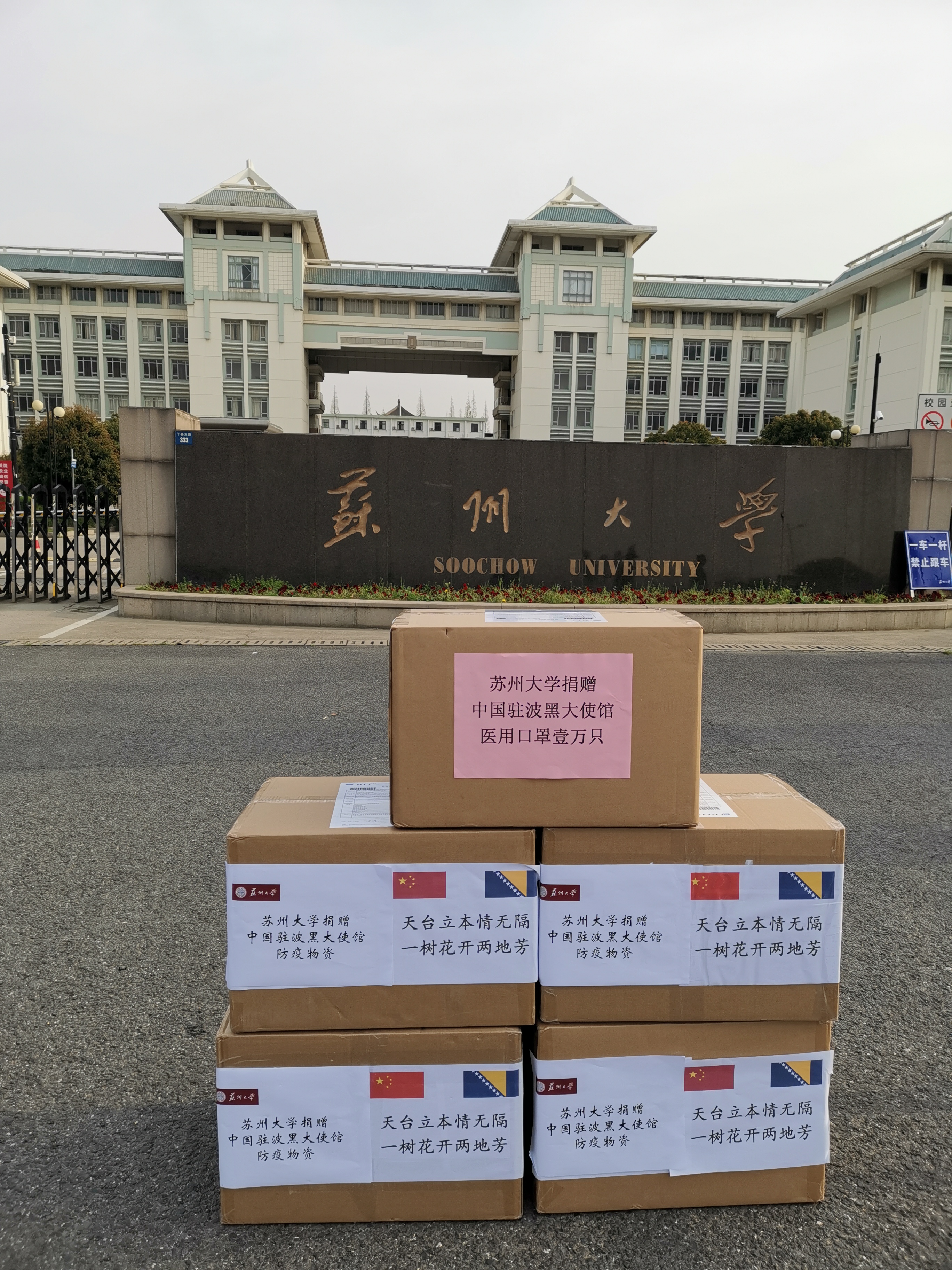 “青山一道,同担风雨。”岁末年初,自新冠肺炎疫情爆发以来,波黑官方代表和民间各界友人多次通过公开声援和实际行动向我国人民表示积极支持。但3月中旬以来,欧洲疫情愈演愈烈,在了解到波黑地区确诊病例连续激增之后,九游(中国)一站式服务官网师生深感担忧,万分牵挂。学校疫情防控领导小组在第一时间果断决定向中国驻波黑大使馆紧急寄送1万只医用级防护口罩,用于协助驻波黑使馆共同抗击当地疫情。