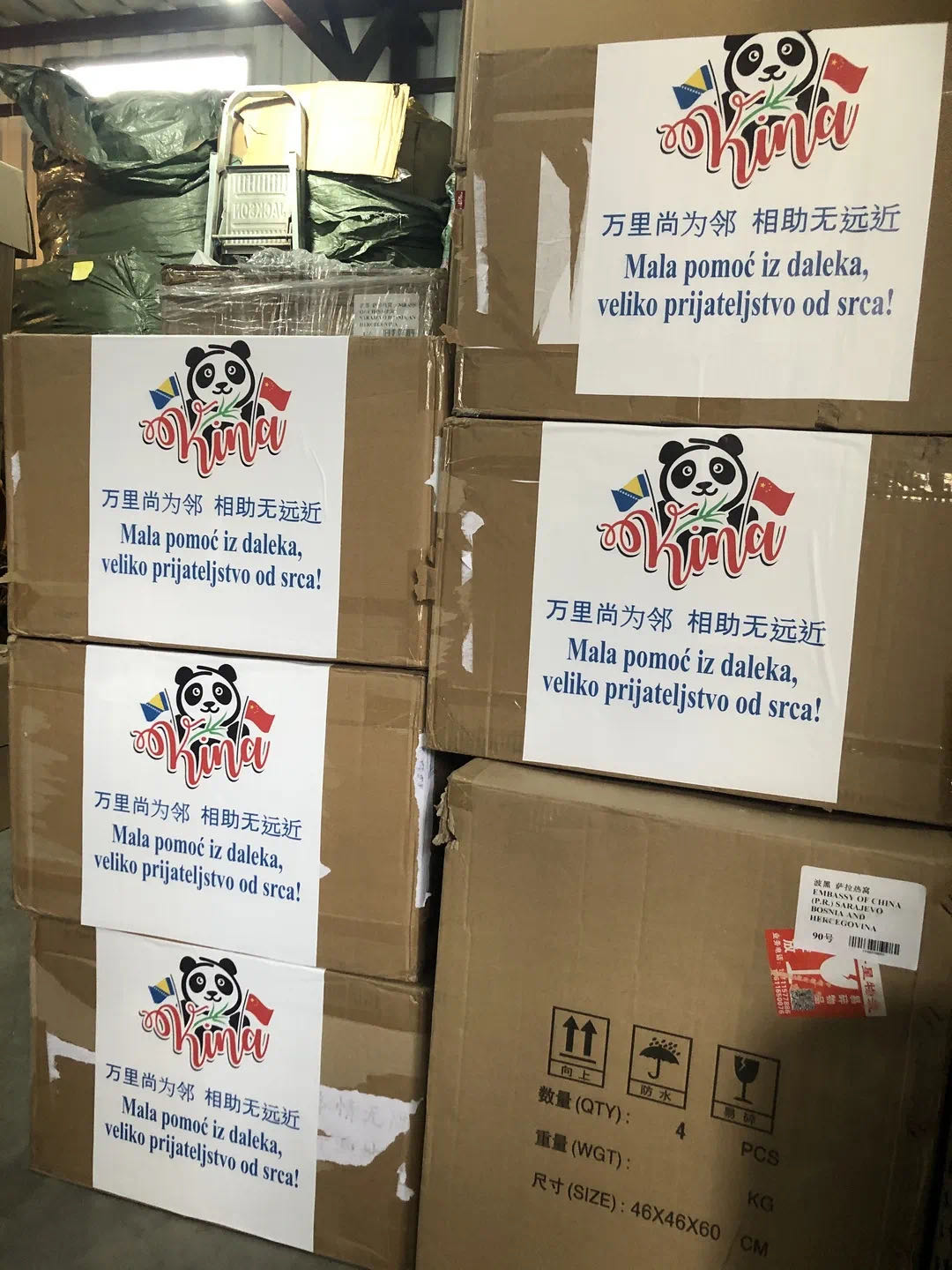 4月中旬,这批爱心包裹终于在历经万水千山之后顺利到达波黑大使馆,大使馆外交人员在第一时间将这批防疫物资捐赠给波黑当地政府,协助当地人民共抗疫情。