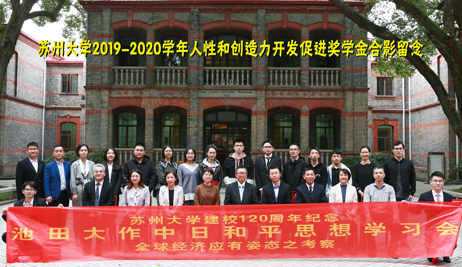 最后,全体获奖人员合影留念,为本次藤原信光先生奖教金、奖助学金颁奖仪式画上了圆满句号。
