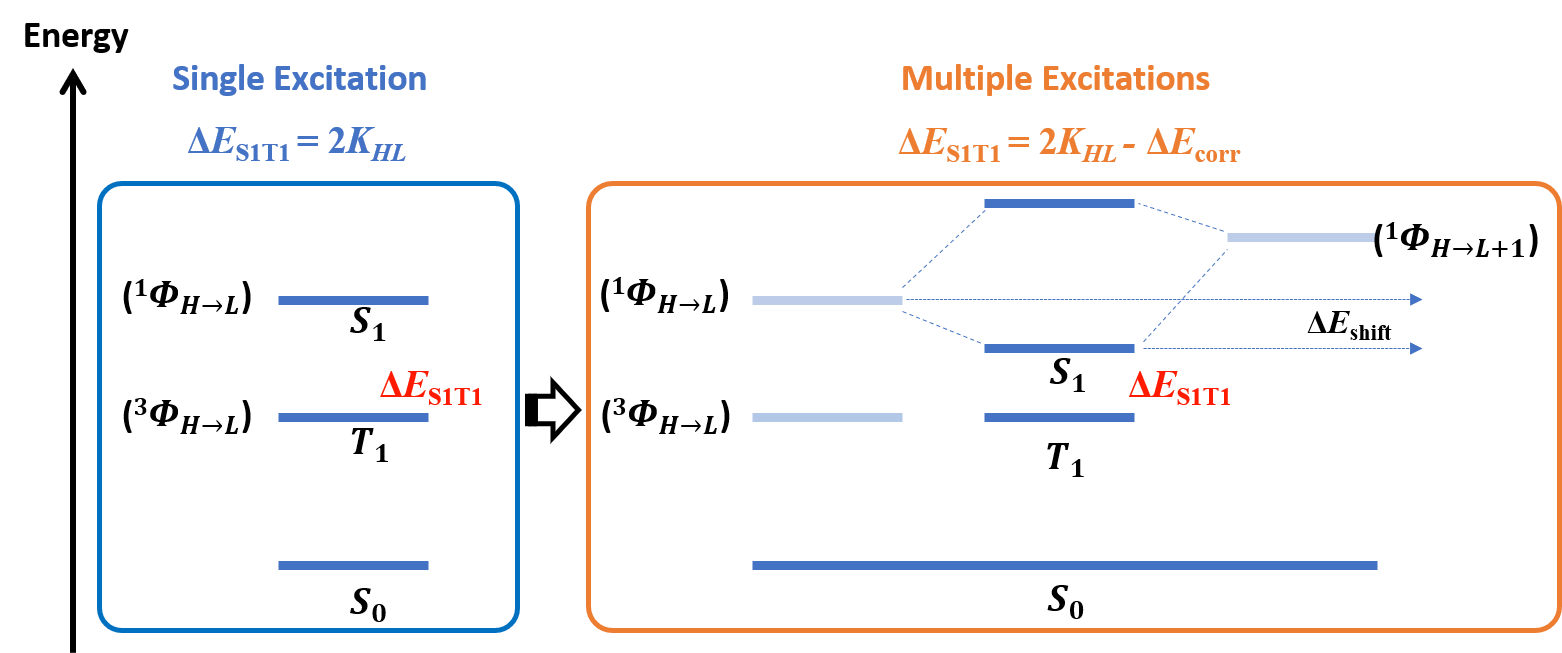 PHA材料应用于OLED器件中,有望满足超高清显示所需的高效率与高色纯度发光特性。然而,传统的理论不能合理解释这类PHA发光材料为何能够实现小的单-三重态能隙(ΔES1T1),这导致该类材料的理性设计面临重大挑战。