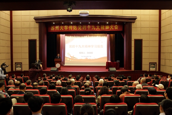 会上,十九大代表、校党委常委、副校长张晓宏从十九大会议的基本情况、十九大报告形成过程、会议的主要成果、报告的总体思路和逻辑结构、报告的主要内容和精神实质等方面对十九大会议及报告做了全面系统而详尽的阐释。他指出,中国共产党第十九次全国代表大会,是在全面建成小康社会决胜阶段、中国特色社会主义进入新时代的关键时期召开的一次十分重要的大会,对鼓舞和动员全党全国各族人民继续推进全面建成小康社会、坚持和发展中国特色社会主义具有重大意义。党的十九大精神博大精深,准确标定了我国发展新的历史方位,深刻阐明了未来相当长时期党和国家工作的大政方针和战略部署,提出了一系列重要思想、重大论断,作出了一系列战略部署、战略安排,站位之高、谋划之远都是前所未有的。张晓宏副校长还结合高校工作实际,详细阐述了学习十九大报告的认识与体会:要深刻理解“优先发展教育事业”的重要意义,深入把握高等教育在新时代的重要地位和发展要求;要深入学习和贯彻十九大精神,更好地发挥新时代高校在“人才培养、科学研究、社会服务、文化传承创新和国际合作交流”的五大职能。他强调,九游官网要牢牢坚持党的领导,坚持以立德树人为根本任务,以改革创新为引领,加快建设“国内一流、国际知名”高水平研究型大学,在新时代中国特色社会主义的伟大实践中努力奋斗,为实现中华民族伟大复兴做出九游官网贡献。
