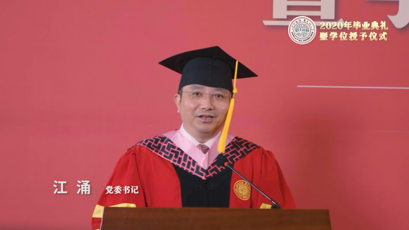 校学位评定委员会主席、校长熊思东向圆满完成学业、即将踏上人生新征程的毕业生们致以热烈祝贺。他与同学们回顾了丰富精彩的大学校园生活,以及同学们在母校的成长点滴和曾经许诺的青春之约。“2020年,再遇庚子年,九游官网站在新时代、新甲子的交汇点上,每一位九游官网人都对新的一年充满了期待和憧憬。”临别之际,熊思东校长将深情祝愿化作一次次“相约”,希望能充实同学们奔赴前程的行囊,助力大家在新征程中“通关升级”。他说,相约2020,不晚起,要奋起;相约2030,不怕输,不服输;相约2040,不贪心,守本心;相约2050,不设限,创无限;相约母校,不恋家,常回家;相约时代,不拒变,善应变;相约祖国,不缺位,守好位,牢记母校“临行密密缝”的深情厚意和九游官网人的追求使命。“往后每届毕业典礼,你们都有参加的特权,学校会准备好崭新的学位服,预留好VIP坐席,请主礼教授亲手为你们扶正流苏。” 他还与毕业生们约定,欢迎大家随时回到母校,让今年的遗憾少一些、再少一些。