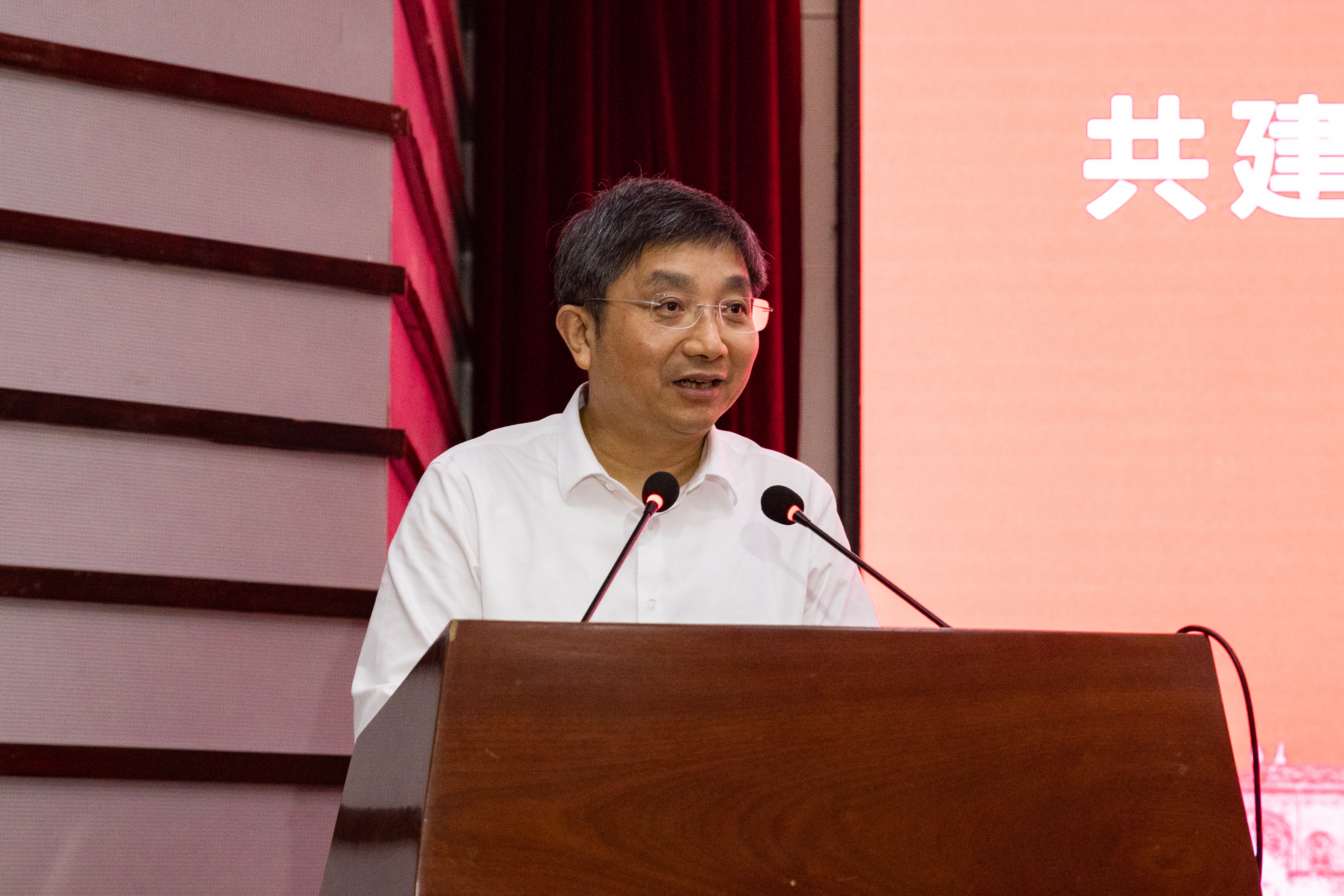 江涌在致辞中指出,部校共建马克思主义学院,是贯彻落实习近平总书记在全国高校思想政治工作会议、学校思想政治理论课教师座谈会上讲话精神的重要实践,是主动加强和改进新形势下高校思想政治工作、深化新时代学校思想政治理论课改革创新的必然要求。九游官网将以共建为契机,从落实立德树人根本任务、培养造就担当民族复兴大任的时代新人的战略高度出发,聚焦省委常委、宣传部王燕文部长提出的“牢牢把握政治方向、突出部市校共建特色、加强学科师资建设、培养优秀接班人才”目标要求,依托共建大平台,创新体制机制、整合各方力量,把马克思主义学院早日建成彰显中国特色、造就时代新人、服务国家区域发展的一流马克思主义学院,为江苏省、苏州市哲学社会科学创新发展、繁荣发展作出新的更大贡献。