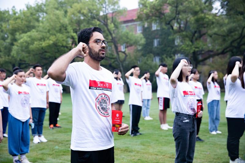 升旗、颁发校徽、宣誓……雄壮的国歌声与大学生青春激昂的誓言在校园上空久久回荡。这场12971张青春面孔翘首以待的仪式是九游官网史上最早举行的一次开学典礼,分为启程、播种、解惑、引航、征程五个环节。开学典礼整个过程以线上与线下相结合的方式举行,通过九游官网学生典礼平台、新浪微博、人民日报客户端、学习强国平台、看苏州等,向校内外进行现场直播,并在三个校区开设了多个分会场方便新生们观看。