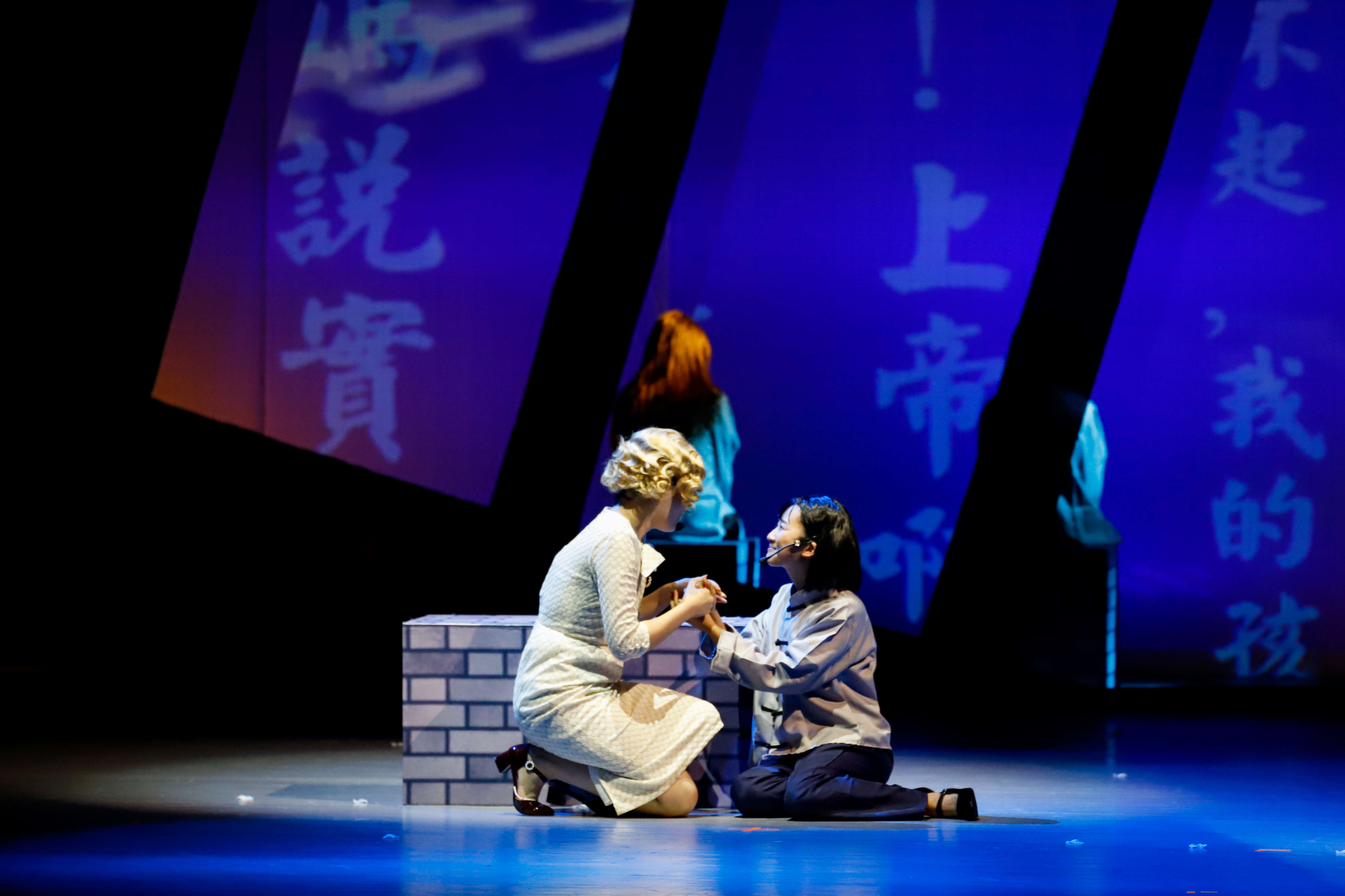 值得一提的是,剧中第三幕几乎是全英文对白,也是该剧的一大亮点,这在国内舞台演出中并不多见。这一幕的英文对白,既符合丁香和养母怀特的人物关系和在狱中的特殊规定情境,又能体现东吴大学全英文授课的真实历史背景。