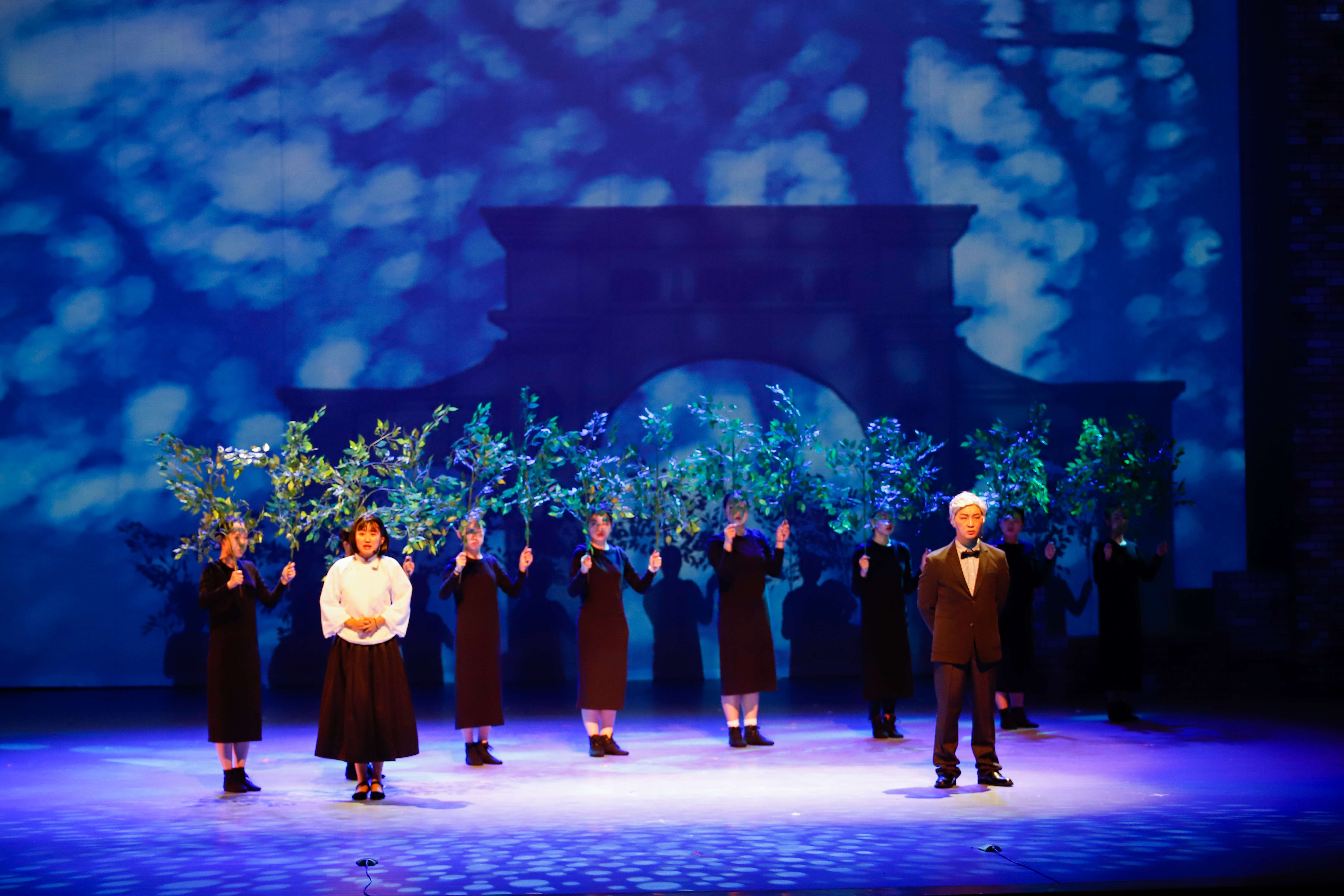 该剧把体验派、表现主义和超现实主义戏剧的不同表演与表现方法融合于一台。在人物关系和情感上,强调“真听真看真感受”的体验派表演;在舞台呈现上,充分利用舞台不同空间层次的纵深调度,最大可能地把不同情节元素集中展示在观众面前,达到了多线并进的叙事效果。尤其是对舞蹈演员的使用,更加具有创造性和想象力,他们时而是树,时而是墙,时而是船,他们有感情、会说话,能与剧中人物互动,不仅能够生动刻画当时当地的环境氛围,也能灵活体现人物当时当刻的内心世界和情绪起伏,又具有表现主义和超现实主义的特点。