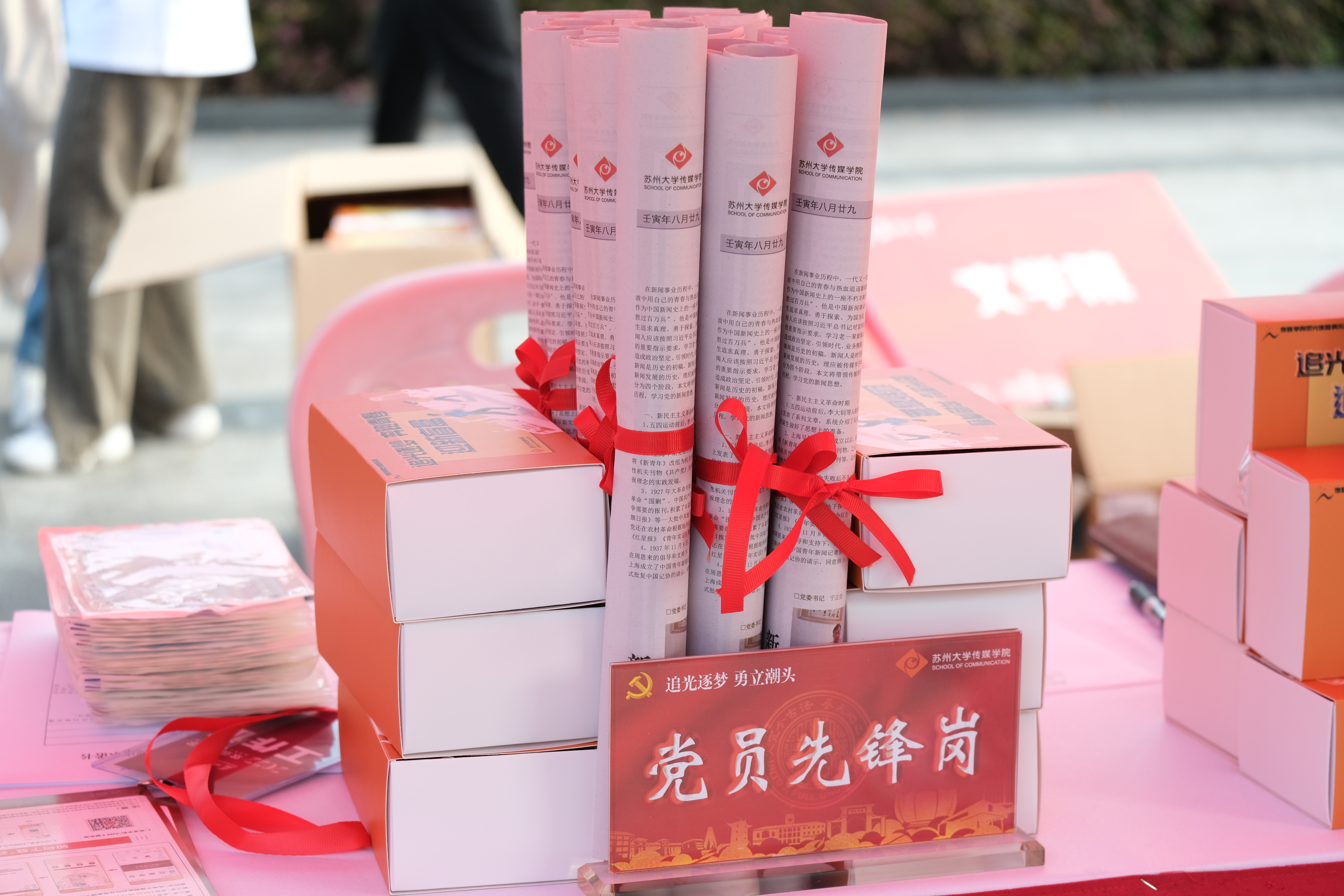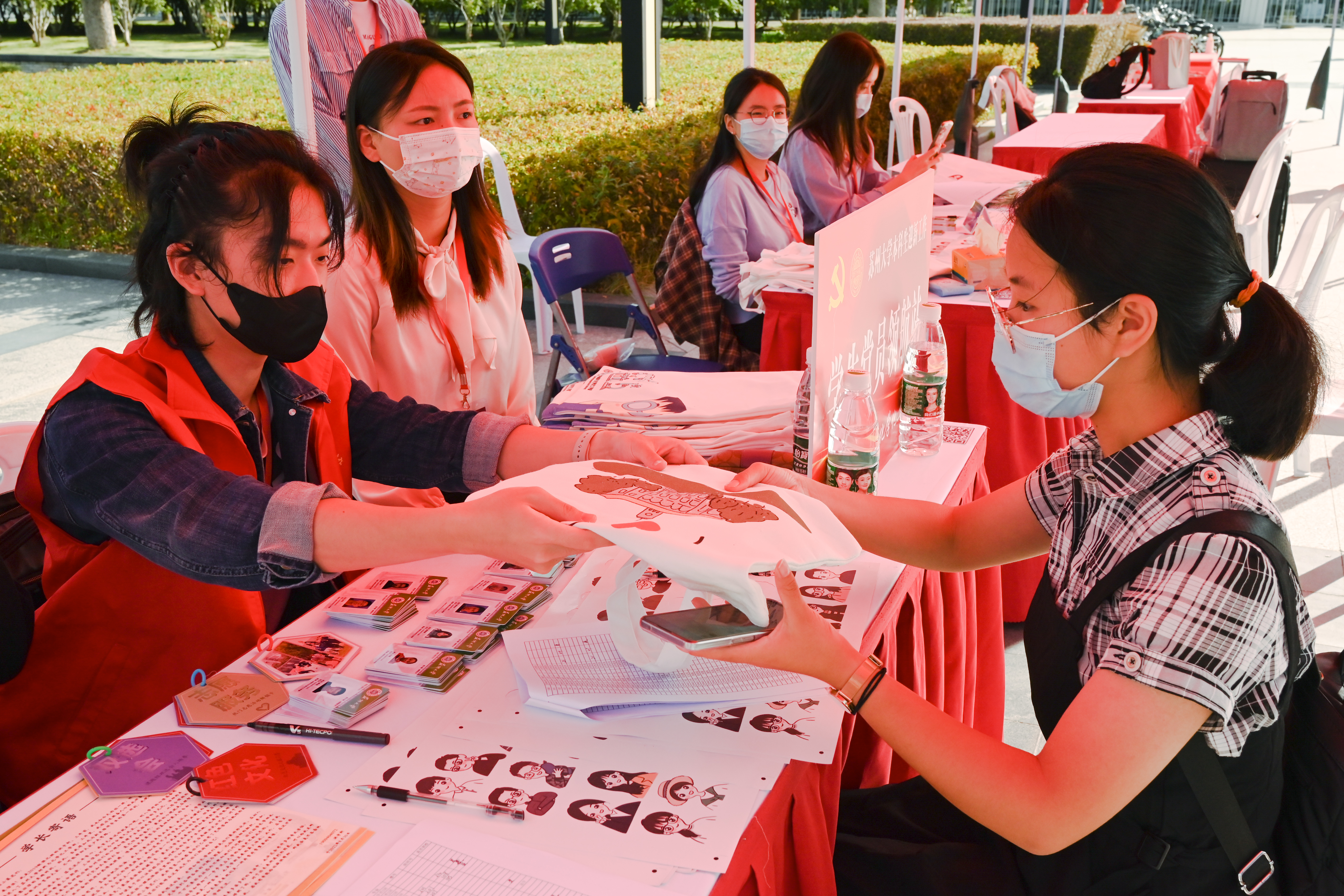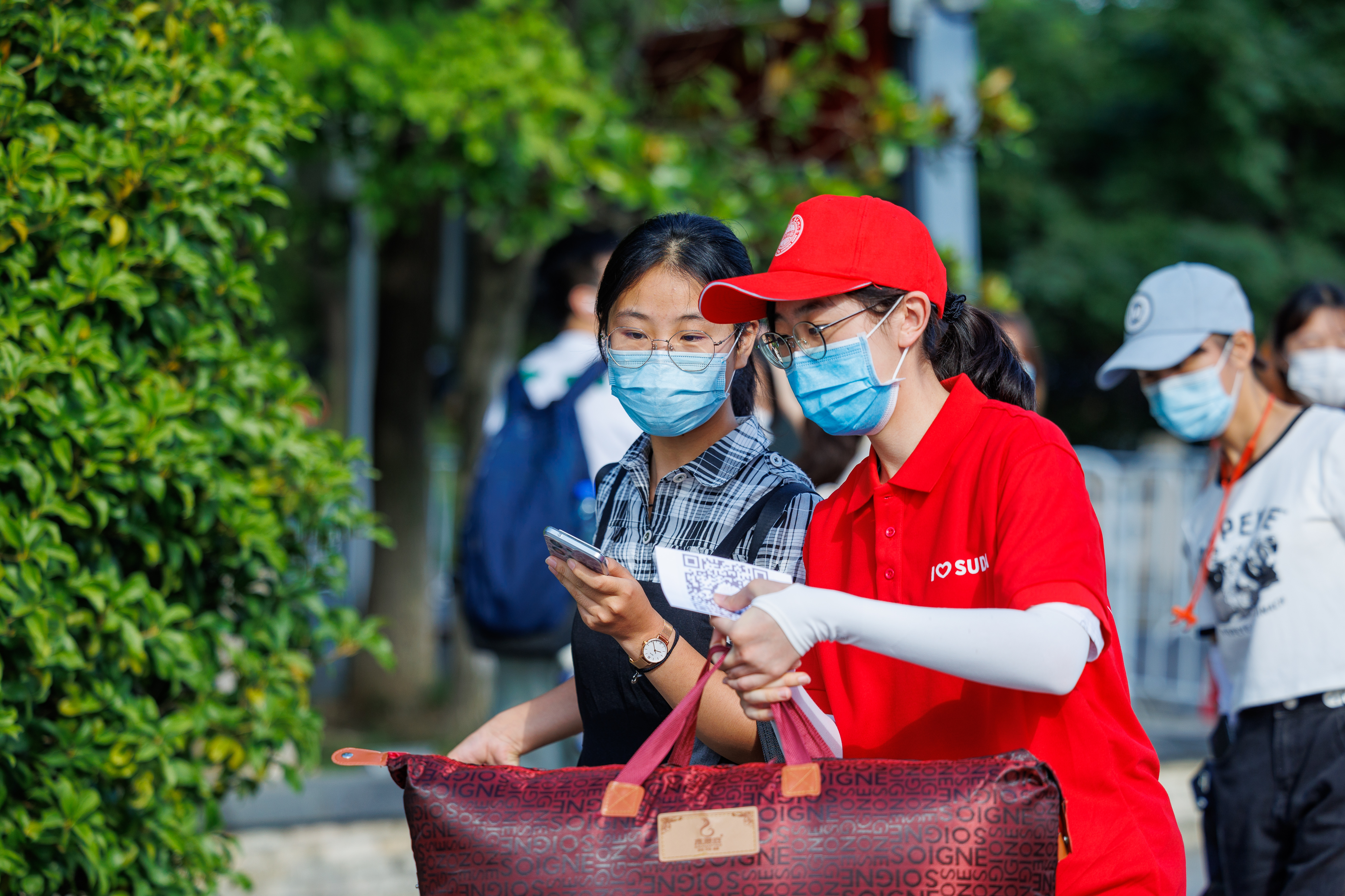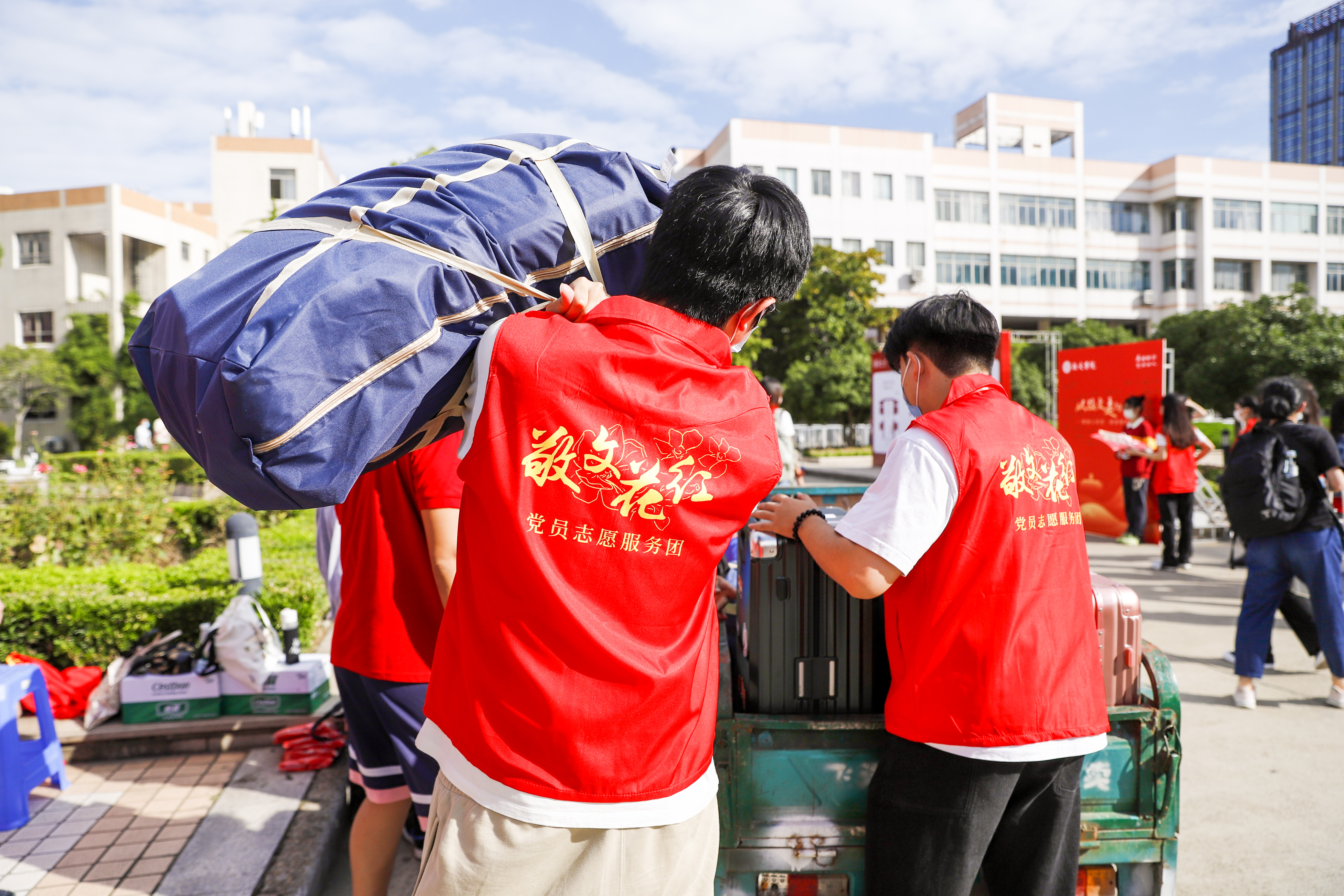 高效信息摸排、热情咨询答疑、耐心指路引导、辛苦搬运行李、发放新生福袋、组织梦想封存活动……在敬文书院迎新点,由“敬文花红”党员志愿服务团、高年级助理导师组建的志愿服务团队贴心助力新生报到,陪伴新生适应、成长,用实际行动践行初心使命,让党徽在迎新一线闪光。