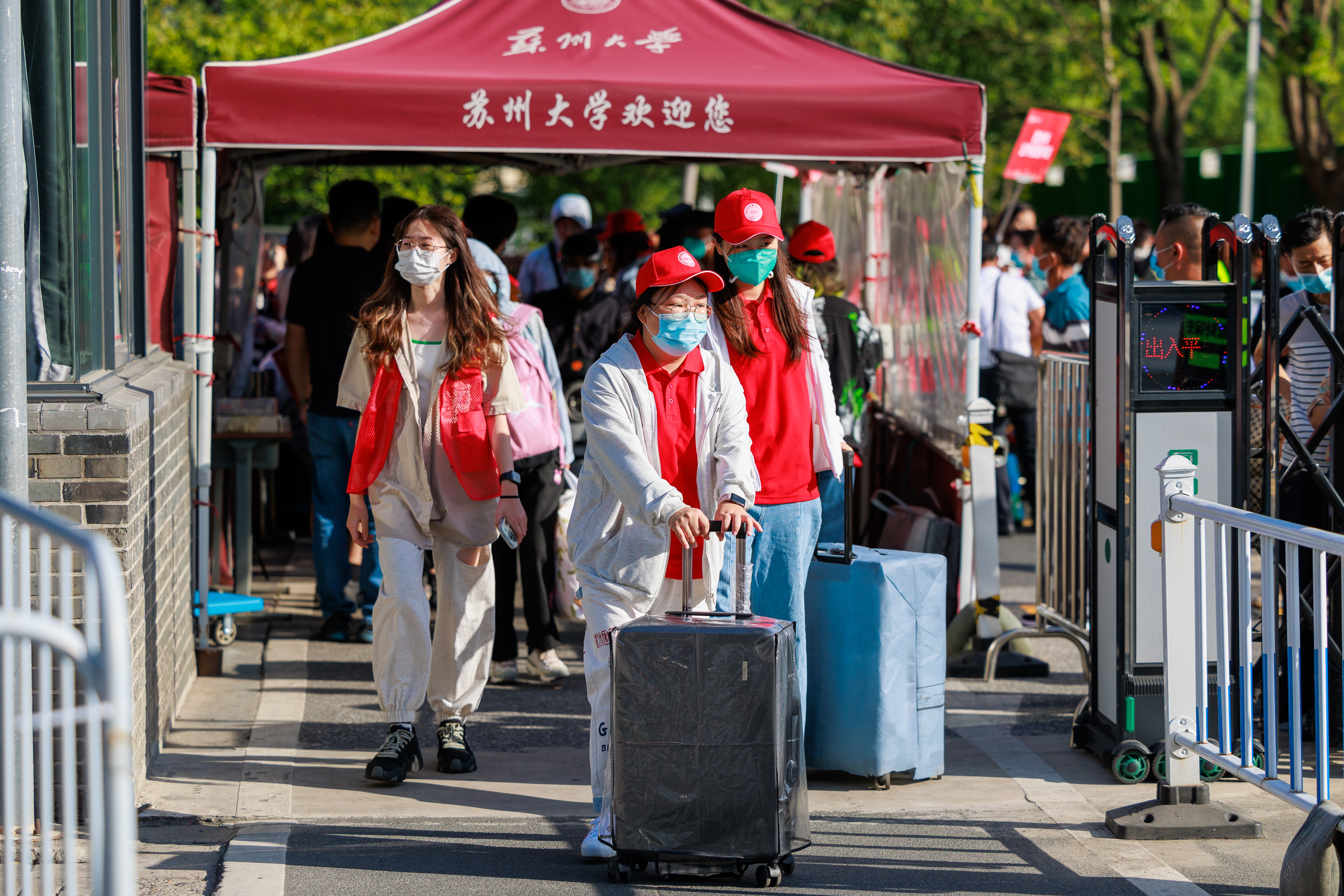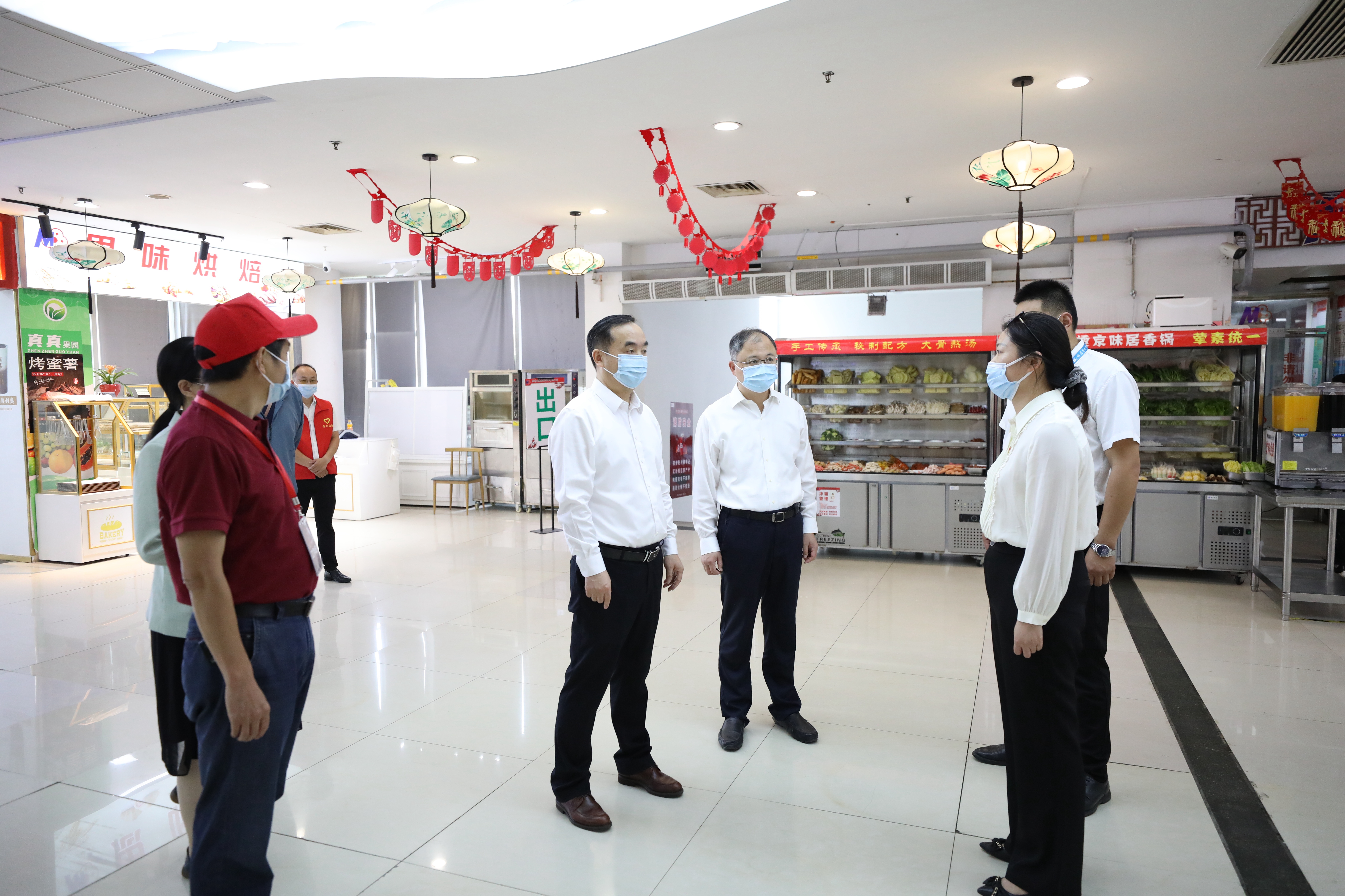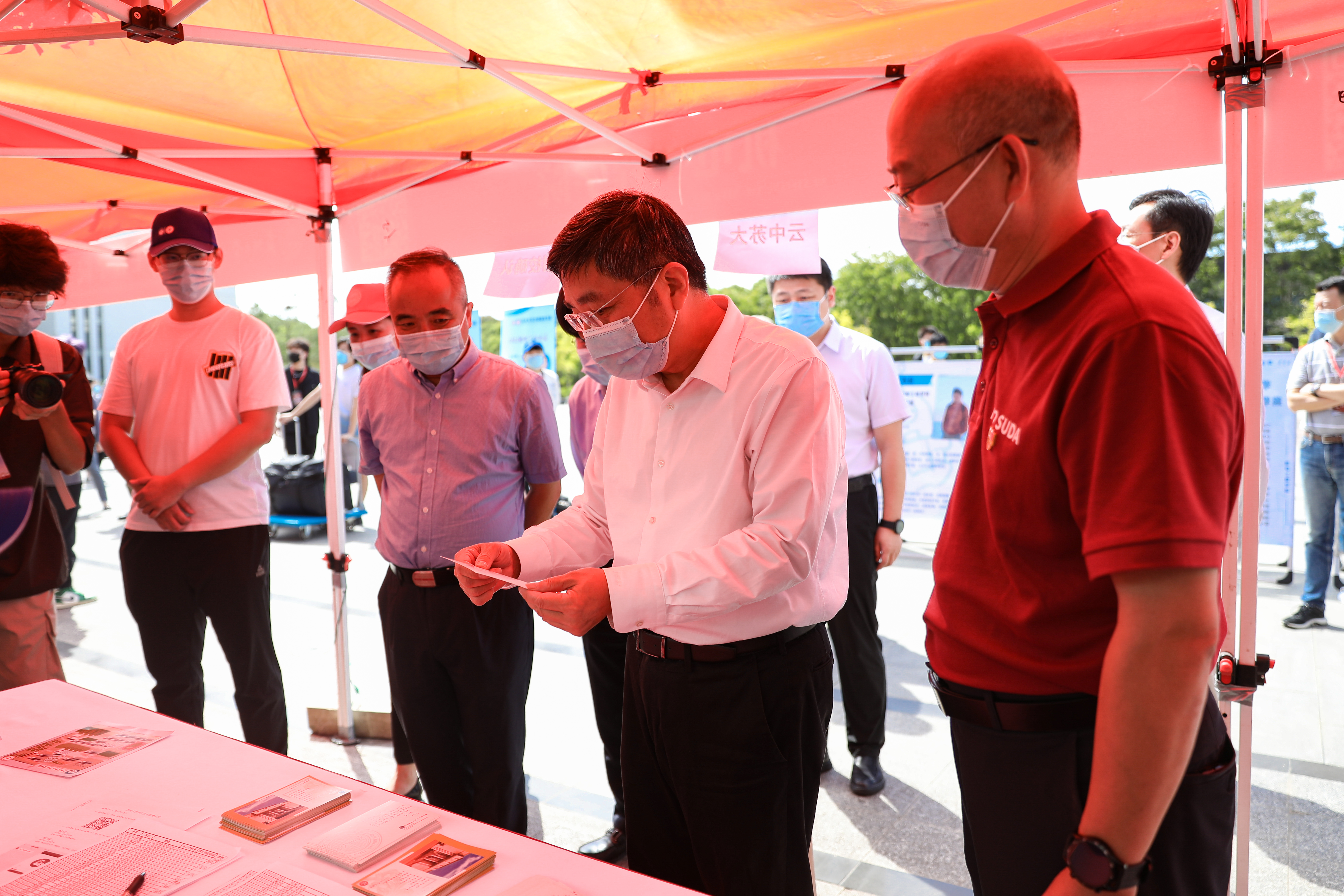 “今天的报到还顺利吗,欢迎同学们来到九游官网,开启新的学习生活。”24日上午,校党委副书记、校长张晓宏和党委副书记王鲁沛早早来到独墅湖校区看望新生,逐一了解新生入学报到流程、迎新工作各项保障以及各学院(部)迎新工作举措。校领导一行还走访了学生宿舍与食堂,与工作人员详细交谈,认真询问学生入校后各项生活服务工作。“要进一步细化工作举措,结合实际情况合理安排错峰就餐、保证用餐距离等,全力确保师生健康安全。”在一期食堂,张晓宏强调要严格按照疫情防控要求做好食堂管理工作。