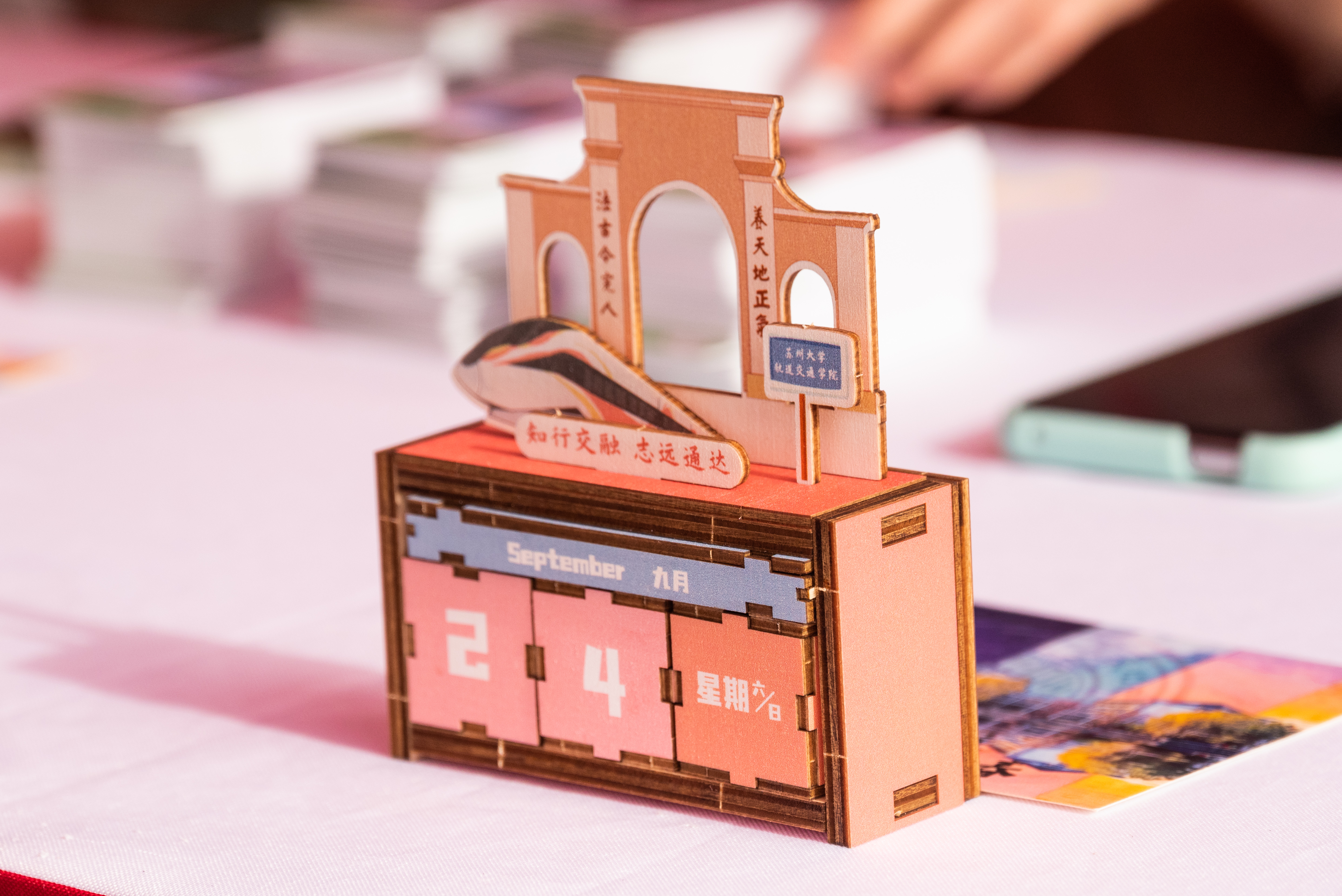 在轨道交通学院迎新点,学院向新生送上含有东吴门、轨道列车、院训等元素的万年历拼图,在拼装过程中希望给新生一份对未来的期待与力量,留下大学弥足珍贵的成长“脚印”,帮助新生规划好大学生活。