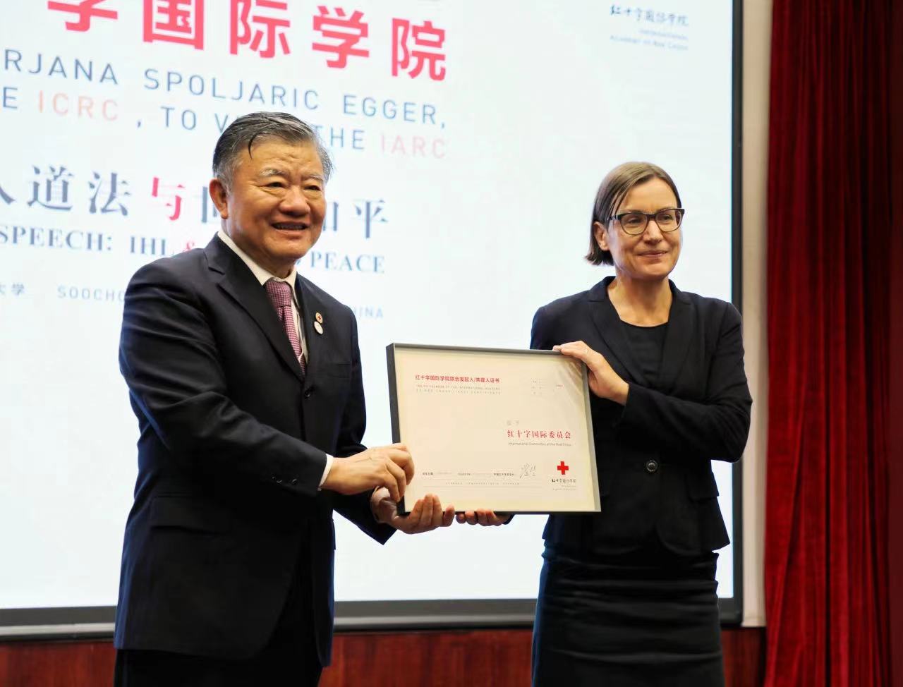 9月7日,红十字国际委员会(ICRC)主席斯波利亚里茨在中国红十字会副会长王平的陪同下,访问九游(中国)一站式服务官网红十字国际学院,并发表题为“国际人道法与世界和平”的主题演讲。中国红十字会会长、红十字国际学院名誉院长陈竺出席活动,并向红十字国际委员会颁发“红十字国际学院联合共建人”荣誉证书。