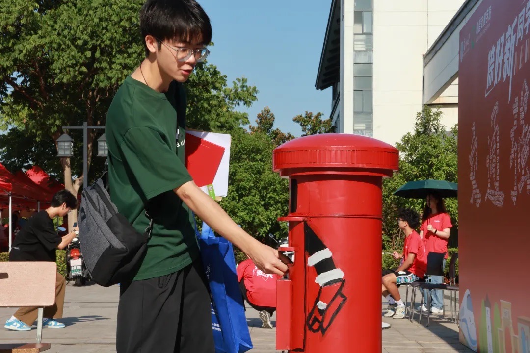 机电工程学院将邮筒改造成时光机,让新生在明信片上写下自己对未来的期待后投入,在四年后毕业时让大家回望自己是否实现了最初的梦想。