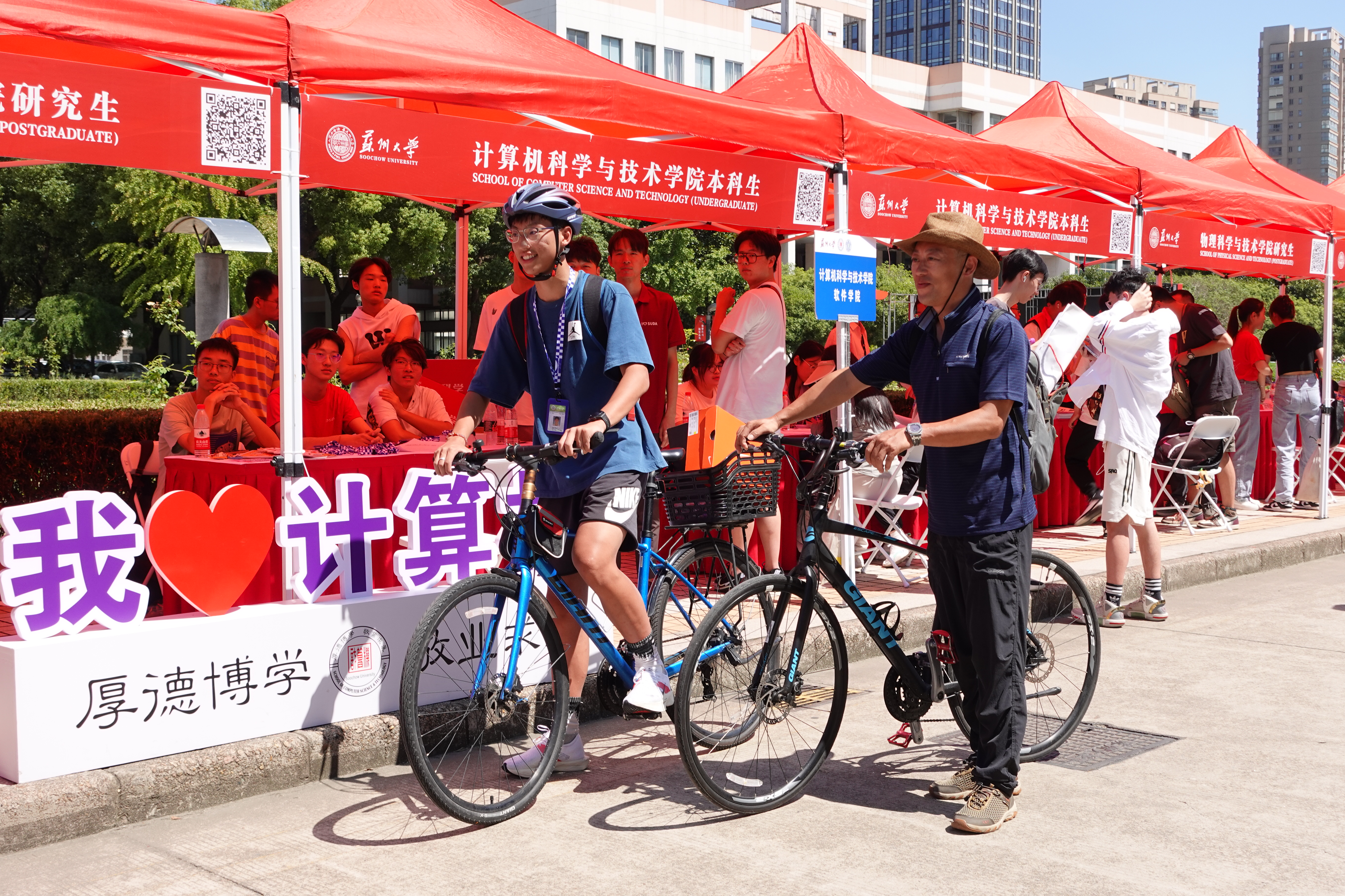 报到现场,一对骑行的父子吸引了大家的目光。从南京出发,270公里的骑行,这位来自计算机科学与技术学院的新生沈杨卓凡,用自己热爱的方式开启了大学新生活。“在路上,爸爸跟我说了很多道理和要注意的事项,这是一段非常有意义的旅程。”“我们是好‘战友’,他是我的小‘英雄’,希望他能在大学里开阔视野,交到好朋友。”沈杨卓凡的父亲对儿子的成长十分欣慰。