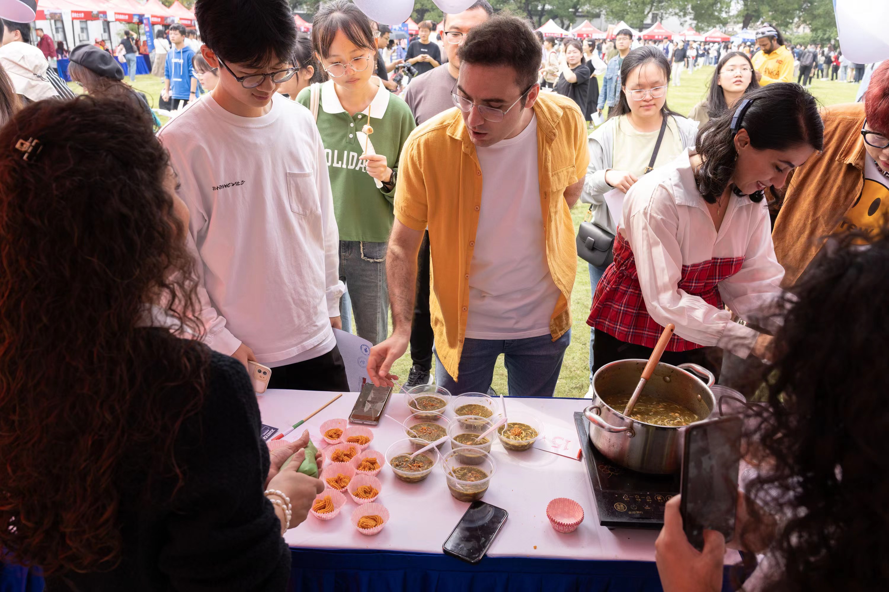 国际风情展设有19个不同国别的展台,通过异域美食品鉴、工艺品展示、民族服装秀、嘉宾互动体验等形式,加深人文交流与心意相通,使大家足不出校便能开启一场异国风情之旅。此外,红十字国际学院、敬文书院和图书馆也作为特邀代表参展,宣传红十字运动精神,展示江南文化风韵,倡导全民阅读理念。