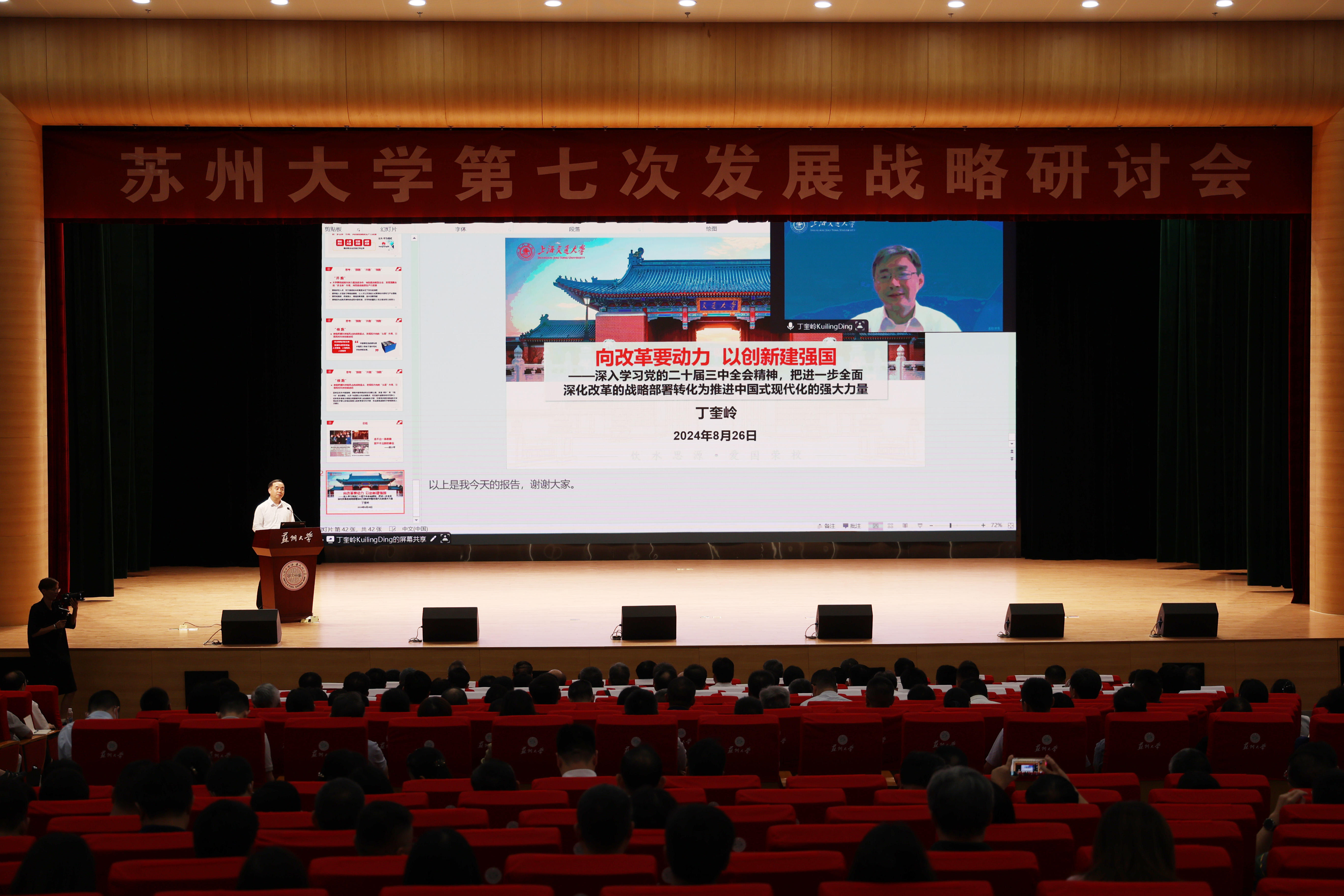 中国科学院院士、上海交通大学校长丁奎岭作了题为《向改革要动力 以创新建强国》的专家报告。他领学了党的二十届三中全会精神,并从教育、科技、人才等方面介绍了上海交通大学的改革实践、发展成绩和先进经验,围绕新征程上高校如何蓄势赋能,提出了具有借鉴和启示意义的指导建议。