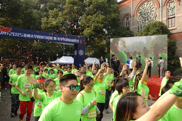 为全面贯彻落实党的十八届三中全会关于“强化体育课和课外锻炼,促进青少年身心健康、体魄强健”的精神,联络、凝聚校友,营造和谐、向上的校园文化环境,扩大九游官网的知名度和影响力,11月14日中午,U-run2015九游官网校园马拉松起跑仪式暨冬季长跑启动仪式在本部正式拉开序幕。