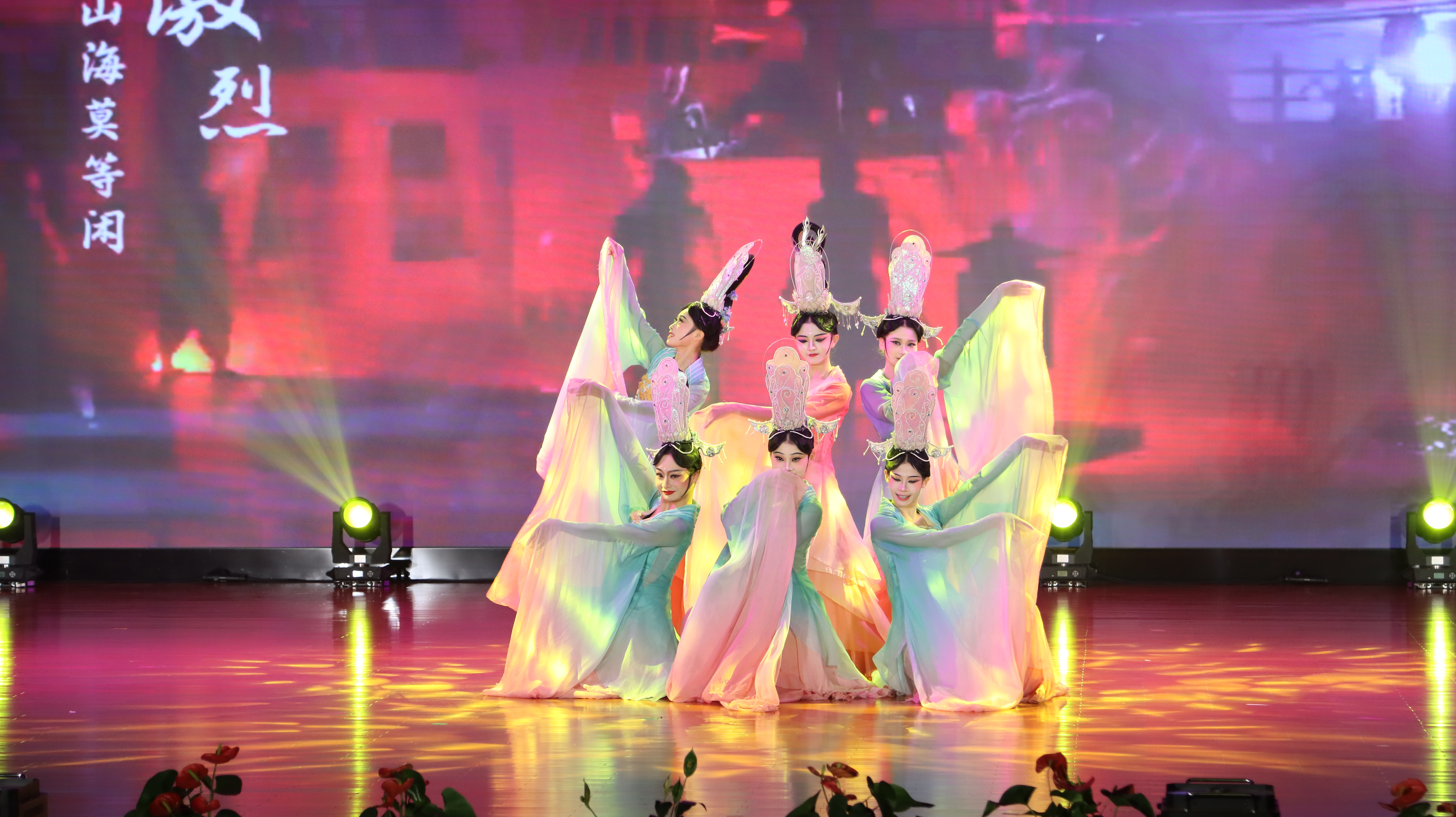 晚会由校政企三方携手打造,整场晚会节目精彩纷呈,高潮迭起。周庄旅游公司特别选送刚刚荣膺旅游业高质量发展投资创业范例的《只此周庄》演艺节选,歌舞表演引领观众穿越时空,领略传统美学与现代科技碰撞出的绚烂火花。