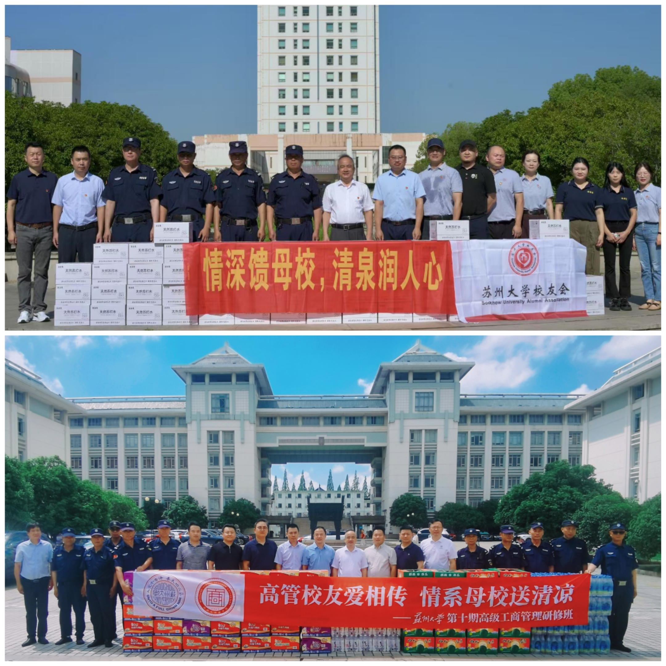 多家校友企业也在积极行动,捐赠了大量的防暑降温物资,物资已陆续发放到各个工作岗位的安保人员手中。